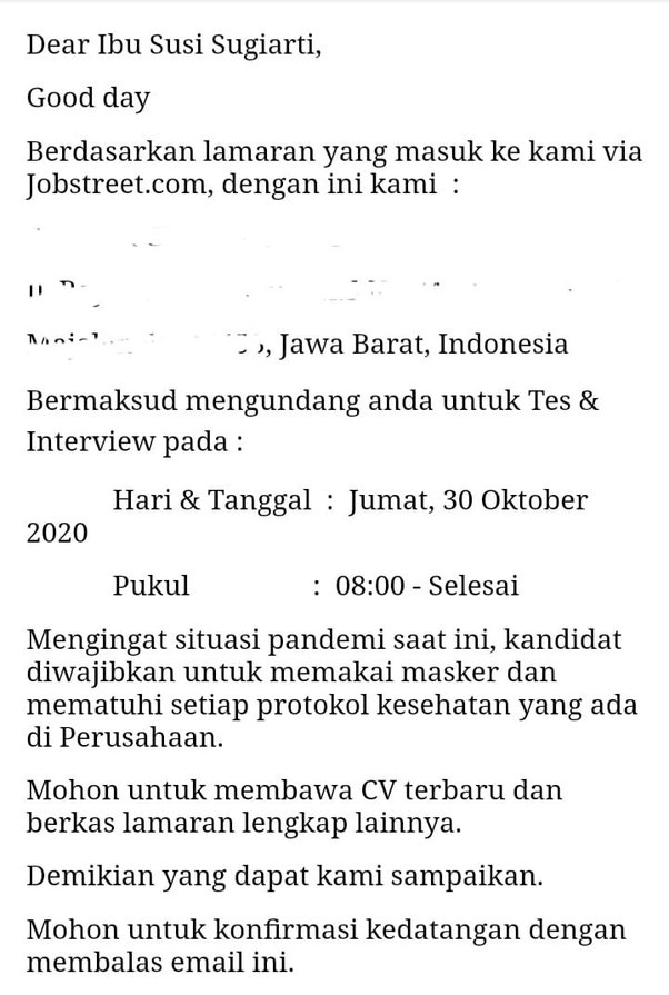 Pada bagian awal email balasan untuk undangan interview, ucapkan salam pembuka yang diikuti dengan nama recruiter. Persiapan sebelum interview · mereview kembali cv dan resume yang telah kamu susun · mempelajari profil dan profil pewawancara jika tersedia .