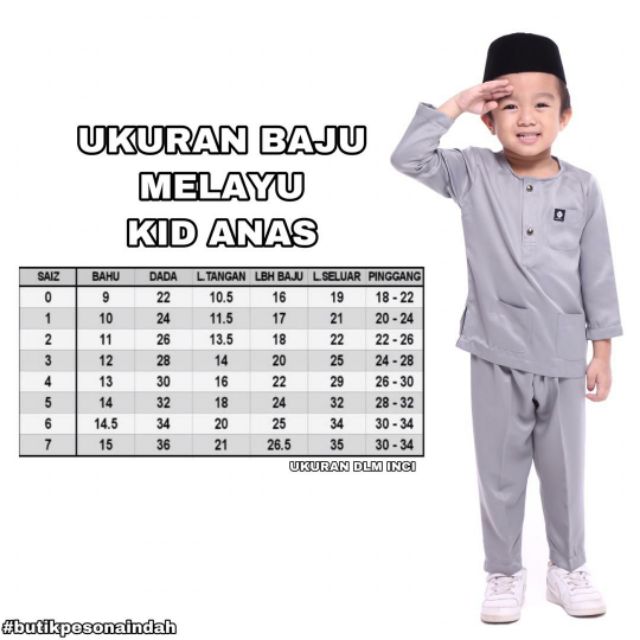 Saiz dan ukuran baju melayu budak by baju kurung cotton si manja.